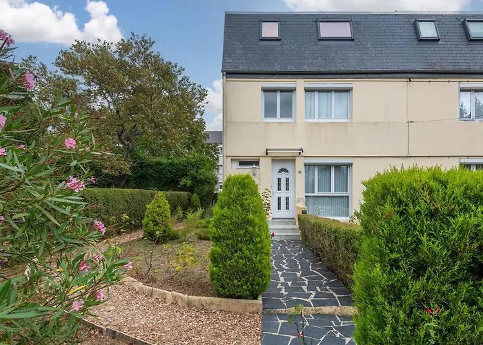 שוכן בעיר קאין, Maison Familiale Avec Jardin - 5 Chambres זהו נכס בעל 3 חדרי שינה, כולל מרפסת עם נוף של גינה. זה כולל מטבח מאובזר ו-3 חדרי אמבטיה.